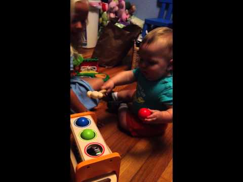 Cal's favorite toy, a gift from Bud and Claire, is a xylophone/ball/hammer combination (best mashup since Dinosaur Train). He has mastered knocking down the balls with the hammer and loves when it makes noise.